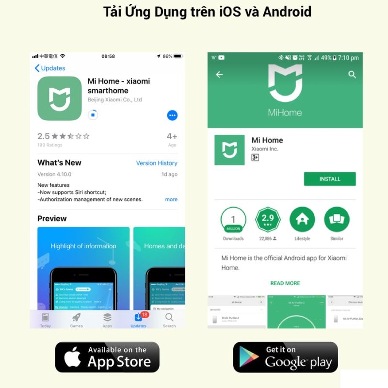 Bước 1: Truy cập App Store hoặc CH Play trên thiết bị di động để tải và cài đặt ứng dụng Mi Home.