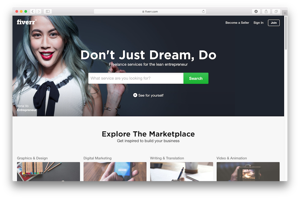 Fiverr là một website được sử dụng trên toàn cầu chuyên cung cấp các bài học trực tuyến về công nghệ như lập trình, thiết kế đồ hoạ, cách chơi nhạc, làm video,… với giá chỉ từ 5 USD.