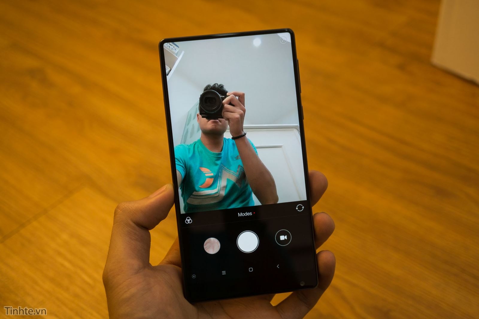 Để làm biến mất phần viền cạnh trên, Xiaomi buộc lòng phải dời camera trước xuống cạnh dưới. Do đặt ở vị trí khác thường nên góc chụp khá lạ mắt. Tuy nhiên giải pháp đơn giản của chúng ta là hãy quay ngược máy lại khi “chụp tự sướng”, mọi thứ sẽ không khác gì các smartphone thông thường.