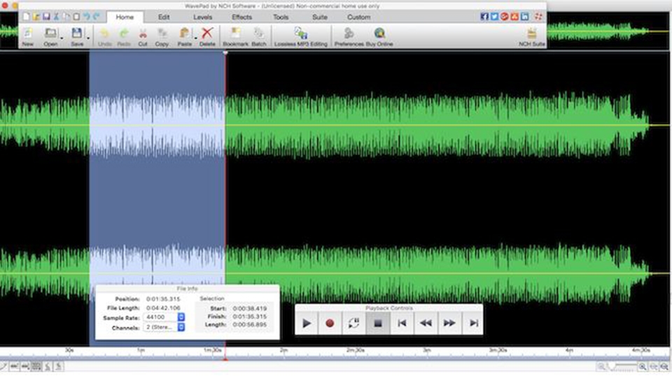 WavePad hỗ trợ đánh dấu âm thanh, một loạt các hiệu ứng thông thường và một số công cụ xử lý văn bản thành giọng nói và giọng nói để khởi động. Giao diện đa cửa sổ cần làm quen một chút, nhưng với tư cách là trình chỉnh sửa WAV hoặc MP3 miễn phí cho Mac, nó rất đáng để xem xét.