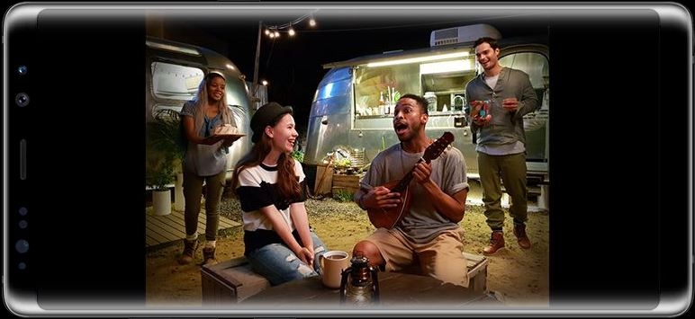 Những mẫu điện thoại Samsung luôn được đánh giá cao về khả năng chụp đêm nhờ khẩu độ và kích thước cảm biến rất lớn. Samsung Galaxy Note 8 sở hữu camera khẩu độ f/1.7, điểm ảnh 1,4um, chống rung quang học OIS và cả lấy nét Dual Pixels – đây đều là những thông số hoàn hảo để chụp ảnh thiếu sáng. Hình ảnh sẽ thu được nhiều ánh sáng hơn hẳn so với các smartphone khác dù là khi chụp hình hay quay phim. Tất nhiên là chất lượng ảnh vẫn được đảm bảo do ảnh chụp thiếu sáng bằng phần cứng chứ không phải tăng ISO lên làm giảm chi tiết như nhiều hãng đang làm.