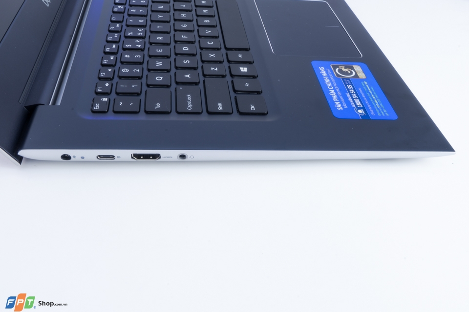 Cạnh trái chứa các cổng HDMI, jack tai nghe 3.5, nguồn, USB Type C