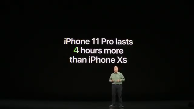 Mình có xài qua iPhone XR và nhận thấy đây là một trong những thiết bị có thời lượng pin "trâu" nhất. Do đó Apple có lẽ không cần phải thể hiện gì nhiều khi mà chỉ cần chi tiết iPhone 11 xài lâu hơn iPhone XR một giờ là quá đủ rồi. Tương tự với hai phiên bản còn lại, Apple đơn giản chỉ cần nhấn: pin tốt hơn thôi.