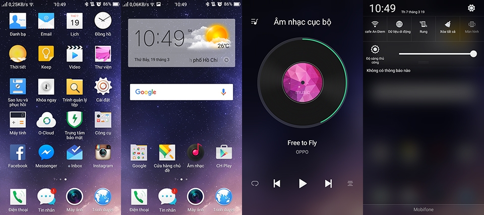Với thông số kỹ thuật như vậy, OPPO F1 dễ dàng đáp ứng được tất cả yêu cầu của người dùng trên một chiếc smartphone, từ các thao tác cơ bản như duyệt web, lượt Facebook, trả lời mail cho đến những tác vụ nặng như chơi game yêu cầu đồ họa cao, đa nhiệm,... Tất cả đều được OPPO F1 xử lý một cách trơn tru và vô cùng mượt mà. Trong quá trình trải nghiệm, máy không hề có hiện tượng giật, lag hay bị thoát ứng dụng một cách đột ngột.