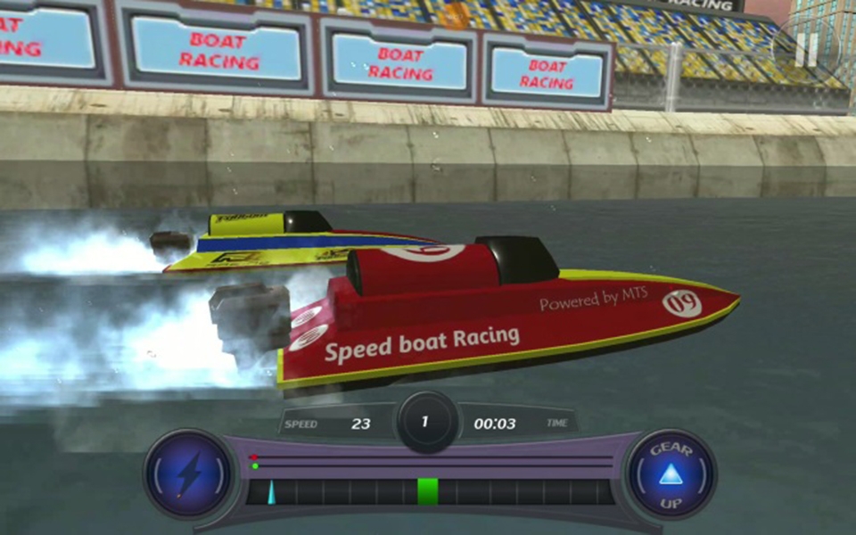 Để làm đa dạng hơn trong việc cung cấp những trải nghiệm mới, ngoài tựa game đua xe ở trên thì Speedboat Racing là một tựa game đua thuyền thay vì xe hơi. Đua thuyền siêu tốc đúng như mô tả, với việc bạn cạnh tranh với đối thủ do máy điều khiển. Chiến thắng một cuộc đua mang lại tiền vàng để bạn nâng cấp, nhưng các điều khiển bị hạn chế. Thay vì đua thuyền trên một đường thẳng hay tránh chướng ngại vật và theo dõi một bài hát,... tất cả những gì bạn làm là khởi động thuyền và bánh răng thay đổi đúng giờ. Đó là tất cả về thời gian, làm cho nó một trải nghiệm đơn giản hơn.