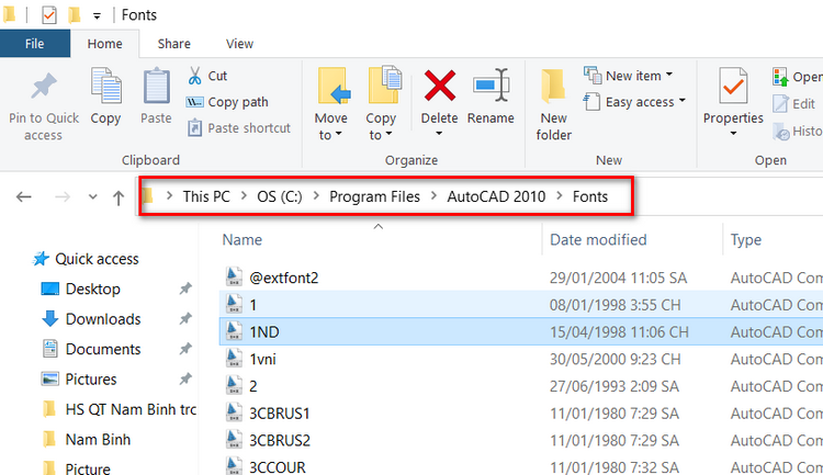 Bước 6: Sau khi tải font chữ đó về máy tính, bạn copy (hoặc giải nén nếu font chữ đó được nén lại) rồi paste vào thư mục Font trong thư mục cài đặt Autocad với đường dẫn như sau: