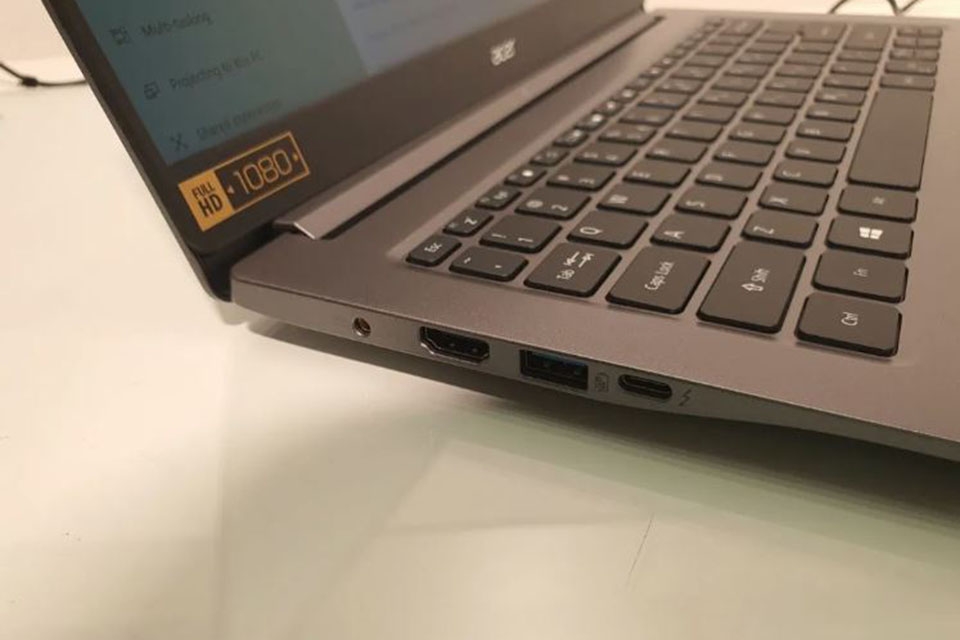 Đến với Acer Swift 3, thiết bị cũng có tấm nền IPS với kích thước 14 inch, độ phân giải Full HD. Các bộ phận bên trong cũng giống như người anh em của nó là Acer Swift 5 và bạn sẽ không tìm thấy bất kỳ sự khác biệt nào. Bạn vẫn có đầy đủ các cổng kết nối như cổng HDMI, USB Type-A và ổ cắm tương thích Thunderbolt Type-C ở bên trái, trong khi cột bên phải có cổng khóa, ổ cắm Type-A khác và jack tai nghe 3,5 mm cùng với hai đèn LED.