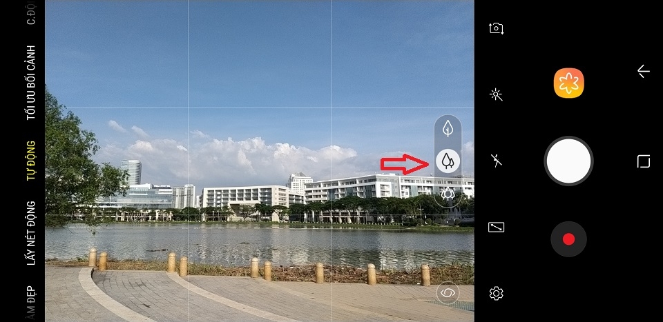 Để tận dụng chế độ chụp cận cảnh hoặc ống kính góc rộng bạn chỉ cần chọn vào biểu tượng cái cây ở ngay giao diện chính, với 3 cây tượng trưng cho góc rộng, 2 cây góc tiêu chuẩn và 1 cây là chụp cận cảnh (tele).