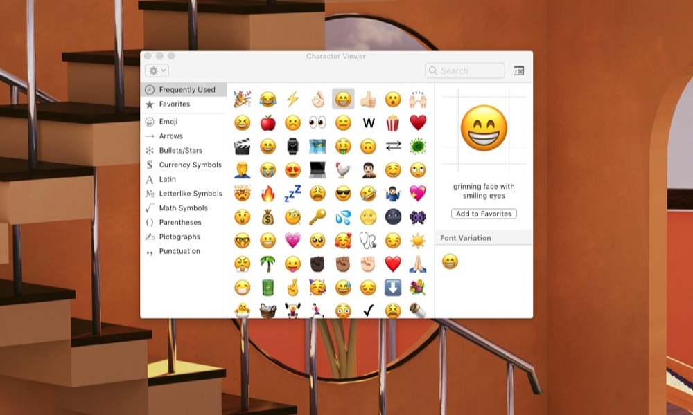 Bạn có thể nhanh chóng mở menu biểu tượng cảm xúc bằng cách nhấn Control + Command (⌘) + Phím cách từ bất kỳ cửa sổ nào. Biểu tượng cảm xúc của bạn sẽ được sắp xếp thành các danh mục với một bên dành cho những biểu tượng bạn sử dụng thường xuyên nhất. Chỉ cần nhấp vào biểu tượng cảm xúc và biểu tượng đó sẽ được chèn vào tài liệu của bạn.