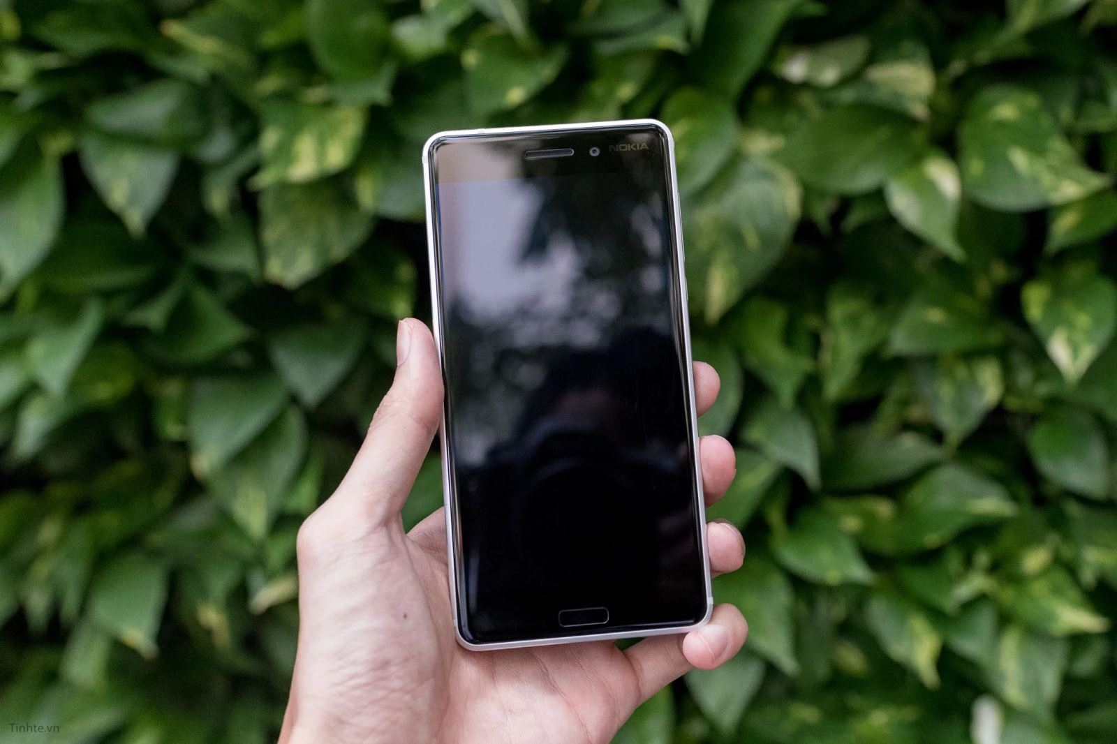 Ở mặt trước, Nokia 6 không có gì đặc biệt nhưng nó vẫn có nhiều điểm làm chúng ta yêu thích như hai cạnh trên dưới cân đối hay viền màn hình khá mỏng và được làm cong 2,5D. Nokia 6 phiên bản bạc có màu bạc ở mặt sau và toàn bộ viền, nhưng mặt trước lại là màu đen. Giống như bạn cầm một khối hộp bạc và úp lên màn hình vậy. Mặt trước màu đen có ưu điểm là khi tắt màn hình thì mọi thứ đều là một màu đen ấn tượng, ngoài ra sẽ không bị hiện tượng có viền đen trong màn hình, điều mà rất nhiều người ghét.