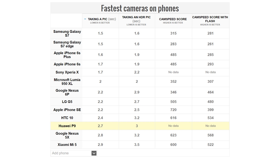 Không ngạc nhiên khi cả hai siêu phẩm mới nhất hiện nay của Samsung là Galaxy S7 và S7 Edge nằm trong danh sách bình chọn những smartphone có tốc độ chụp ảnh tốt nhất năm 2016. Tốc độ chụp ảnh mà nhóm thử nghiệm kiểm tra được trên cả hai chiếc smartphone là 1,5 giây, nhanh hơn một chút so với đối thủ của mình là iPhone. Ngoài ra, S7 và S7 Edge cũng mất khoảng 1,6 giây để chụp ảnh ở chế độ HDR, cũng như cả hai sản phẩm đều được trang bị chip xử lý Snapdragon 820 mang đến hiệu năng xử lý tốc độ cao. Không những vậy, S7 và S7 Edge còn có điểm cộng sáng giá khác, chính là khởi động nhanh ứng dụng chụp ảnh cực kỳ nhanh chóng bằng cách nhấp đúp vào nút Home cứng khi đang ở trong bất kỳ cửa sổ ứng dụng nào khác, kể cả khi màn hình đang khóa. Tính năng này giúp người dùng có thể rút ngắn thời gian khởi động để không bỏ lỡ những khoảnh khắc đẹp.