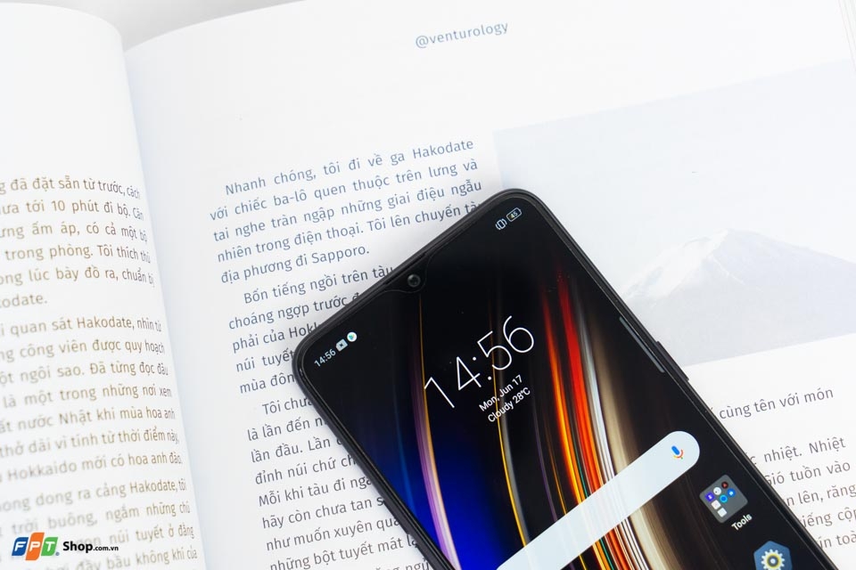 Quay trở về mặt trước, Realme 3 Pro sở hữu màn hình 6,3 inch. Đây là một kích thước màn hình khá lớn trên smartphone nhưng thực chất khi sử dụng bạn lại hoàn toàn không cảm nhận được điều đó. Sự tinh chỉnh cũng như tối ưu các cạnh màn hình khá tốt nên dù sở hữu màn hình lớn nhưng lại cho cảm giác cầm nắm không khác gì chiếc điện thoại màn hình 6 inch, mọi trải nghiệm, chạm, vuốt bằng một tay đều dễ dàng và tuyệt vời, không hề có chút khó khăn nào.