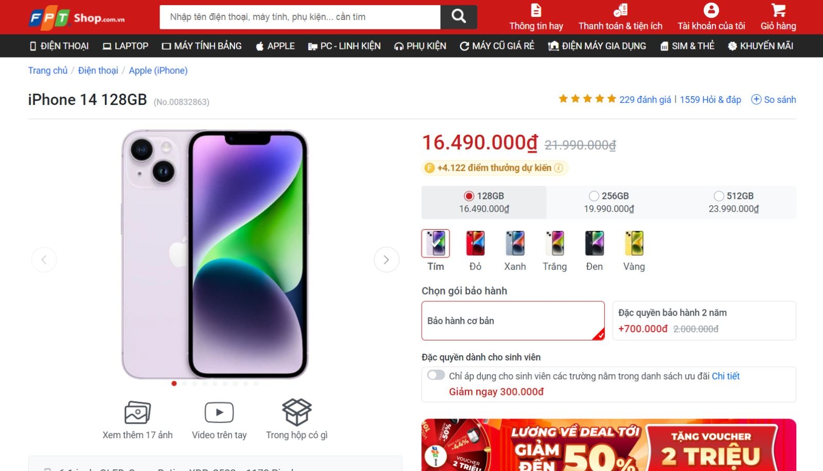 Hiện giá bán của iPhone 14 tại FPTShop là 16.490.000 VNĐ và phiên bản iPhone 14 Plus là 19.390.000 VNĐ.