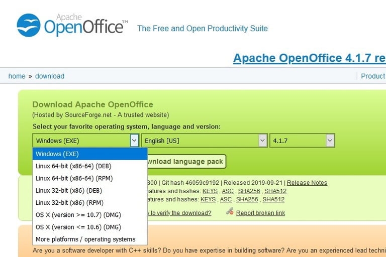 Tải OpenOffice tại đây: https://www.openoffice.org/download/index.html