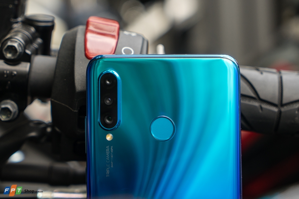 Mặt lưng chính là phần nổi bật nhất trên chiếc P30 Lite với màu gradient chuyển sắc độc đáo, thay đổi này theo từng góc nhìn. Tuy mặt lưng này chỉ là nhựa giả kính nhưng nhờ sự tinh tế trong thiết kế với lớp phủ sơn bóng khiến mặt lưng trông không khác gì kính, bạn rất khó nhận ra. Ngoài ra, ngay chính giữa mặt lưng cũng là vị trí của cảm biến vân tay một chạm khá nhạy, máy cho mở khóa nhanh, dường như không có độ trễ.