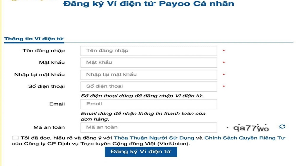 Tuy nhiên, đây mới chỉ là bước tạo tài khoản Payoo online. Nếu muốn sử dụng được các chức năng của ví điện tử Payoo thì bạn cần phải thực hiện thêm thao tác “Hoàn thiện ví điện tử”, bao gồm các bước: