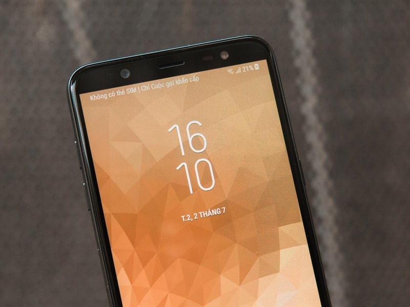 Ở mặt trước của máy là thiết kế màn hình tràn viền kích thước 6 inch với tỉ lệ 18.5:9 cho cảm giác như đây chỉ là một sản phẩm có kích thước tầm 5 inch mà thôi. Kết hợp với công nghệ hiển thị AMOLED đến từ nhà Samsung nên Galaxy J8 có chất lượng hiển thị tốt, sắc nét nhưng cũng không kém phần trung thực.