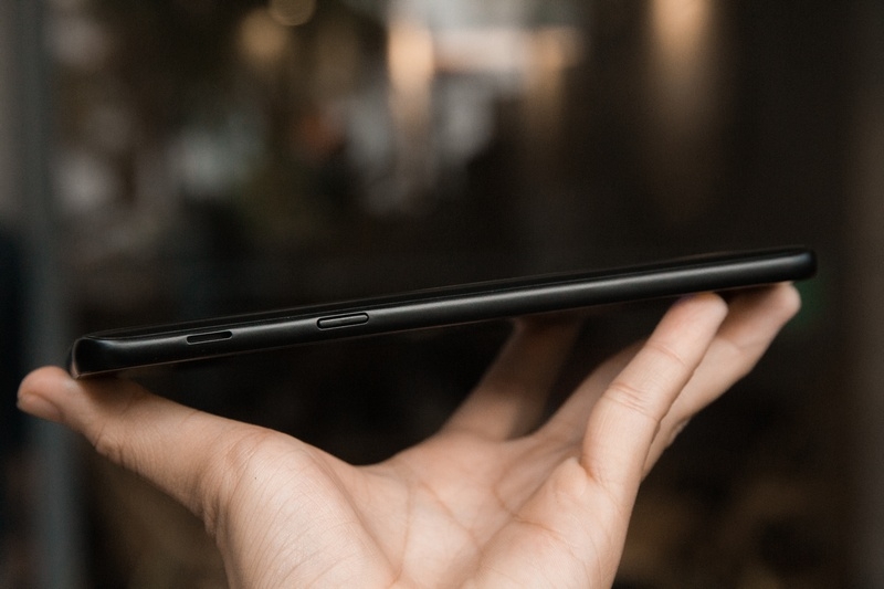 Cạnh trái của sản phẩm là nơi đặt phím tăng giảm âm lượng, bên dưới là vị trí của đựng SIM 1 và khay đựng SIM 2 cùng một thẻ nhớ microSD.