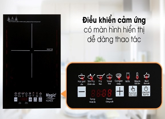 Bếp từ Magic Korea được trang bị bảng điều khiển cảm ứng hiện đại. Điều này giúp người dùng dễ dàng thao tác trên thiết bị. Vì vậy, sản phẩm phù hợp với nhiều đối tượng người dùng, đến từ các lứa tuổi khác nhau.