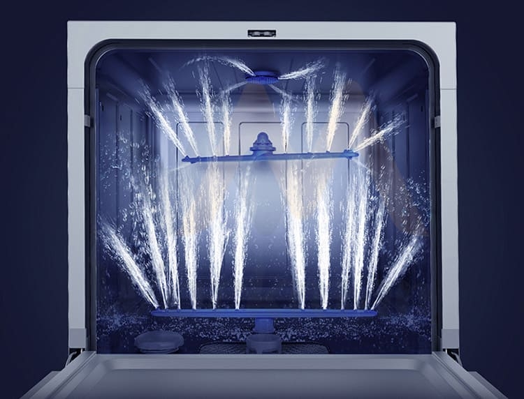 - Hiệu suất làm sạch hiệu quả ưu việt do có hệ thống tay phun nước áp lực cao giúp loại bỏ các vết bẩn khó mà tay người không thể làm sạch hoàn toàn.