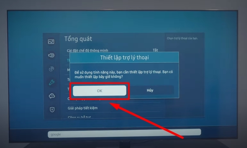 Bước 4: Trên màn hình tivi hiển thị “Để sử dụng tính năng này bạn cần thiết lập trợ lý thoại. Bạn có muốn thiết lập bây giờ không?” thì bạn chọn OK.