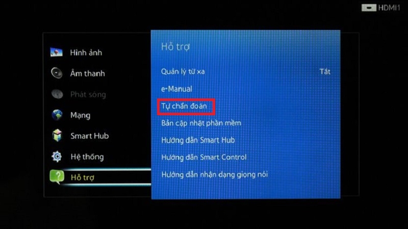 Nếu đường mạng không gặp vấn đề gì mà vẫn gặp lỗi tìm kiếm bằng giọng nói thì người dùng cần cài đặt lại Smart Hub. Cách thiết lập lại Smart Hub bao gồm: nhấn vào nút HOME trên remote → Chọn Thiết đặt trên màn hình → Hỗ trợ → Tự chẩn đoán → Đặt lại Smart Hub → Nhập mã Pin (thường là 0000) là hệ thống sẽ tự khắc đặt lại.