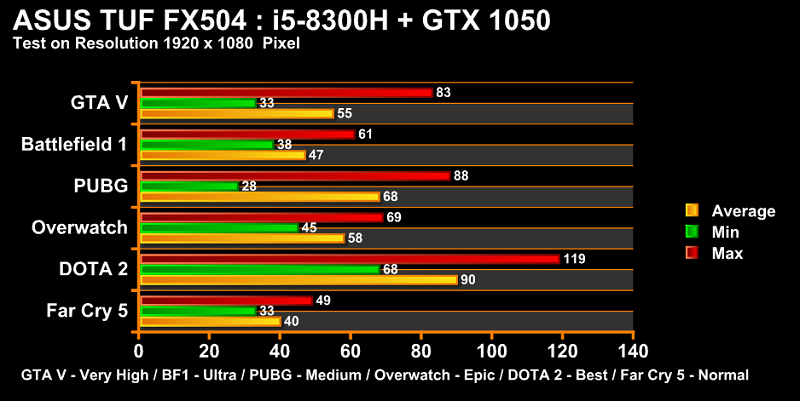 Do cấu hình của ASUS TUF FX504GD dư sức chiến mượt Liên Minh Huyền Thoại ở mức cao nhất . Vậy đối với game yêu cầu đồ hoạ cao như PUBG thì thế nào?