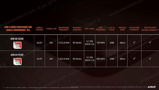 Khi biết rằng Chromebook được sử dụng theo mục đích văn phòng và chơi game trên nền web, AMD tự tin rằng họ sẽ ăn nên làm ra ở phân khúc này. Có một mẫu CPU khác cũng nằm trong danh sách là A4-9120C yếu hơn mẫu vừa đề cập một chút. Tất cả các mẫu CPU AMD dành cho Chromebook đều có thời lượng pin hơn 10 tiếng. HP và Acer sẽ là những hãng tạo ra các mẫu Chromebook đầu tiên dùng CPU AMD.