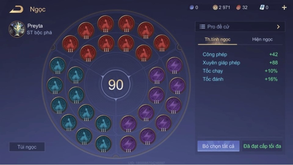 Với bộ ngọc bổ trợ này sẽ cộng thêm cho Preyta đủ lượng công phép và xuyên giáp phép, giúp vị tướng này không quá yếu so với kẻ địch trong giai đoạn đầu trận. Pháp tốc đánh và tốc chạy cộng thêm sẽ giúp Preyta tăng thêm khả năng sát thương thông qua đòn đánh tay cùng với lượng sát thương biến ảo giữa công phép kỹ năng và đòn đánh tay.