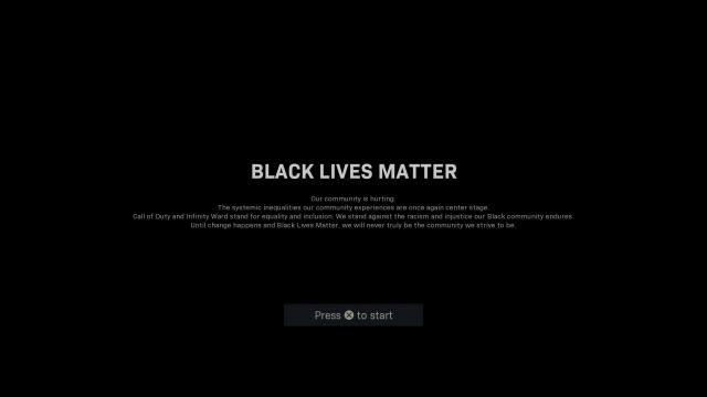 Call of Duty: Modern Warfare vừa được cập nhật với thông báo mới hỗ trợ cho chiến dịch Black Lives Matter. Nhà phát triển Infinity Ward phát đi một thông điệp như sau: Cộng đồng của chúng ta đang bị tổn thương. Sự bất bình đẳng hệ thống mà chúng ta đang trải qua đã một lần nữa trở thành trung tâm chú ý. Call of Duty và Infinity Ward tượng trưng cho sự bình đẳng và hòa nhập. Chúng tôi chống lại sự phân biệt chủng tộc và bất công mà cộng đồng người da đen đã phải chịu đựng. Nếu những thay đổi tích cực không xảy ra, chúng ta sẽ không bao giờ thực sự đạt được mục tiêu mà cộng đồng hướng tới.