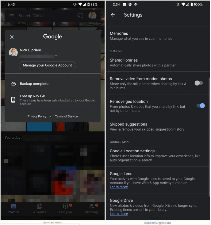Google Photos sẽ sớm hỗ trợ chuyển nhanh tài khoản bằng cử chỉ