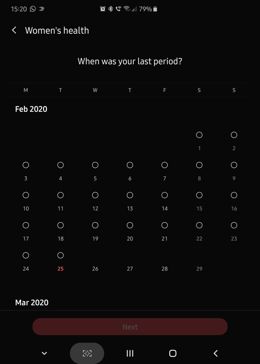 Đây là một trong những động thái đáng hoan nghênh đến từ Samsung Health, bởi vì phần lớn các ứng dụng bên thứ ba được thiết kế để theo dõi chu kỳ kinh nguyệt, đều sẽ bắt bạn trả tiền hoặc đăng ký trả phí và thông thường chúng hoạt động kém so với mong đợi. Như vậy, với bản update mới nhất cho Samsung Health, người dùng sẽ chẳng còn bận tâm các ứng dụng bên thứ ba nữa, vì ứng dụng này bao gồm cả lịch chu kỳ kinh nguyệt chuyên dụng.