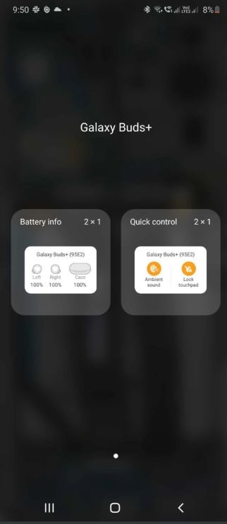 Theo đó, bản cập nhật đã thêm hai widget ô lưới 2x1, bao gồm Thông tin về pin (Battery info) và Điều khiển truy cập nhanh (Quick control). Đúng như tên gọi, Battery info sẽ hiển thị mức pin trên mỗi tai nghe nhét tai cũng như hộp sạc. Trong khi đó, widget của Quick control cho phép bạn bật hoặc tắt Âm thanh xung quanh và touchpads từ màn hình chính.