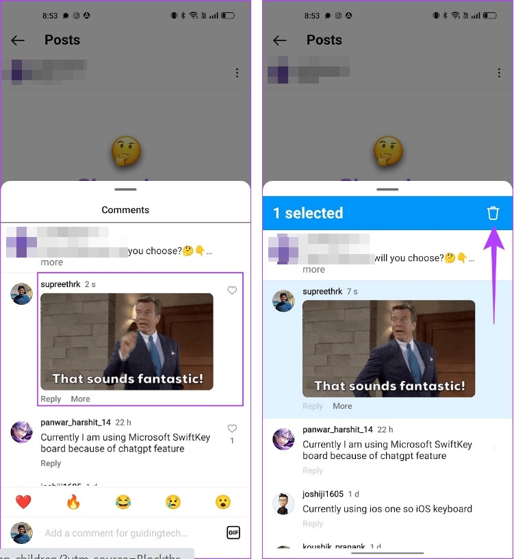 Cách xóa bình luận bằng ảnh GIF trên Instagram