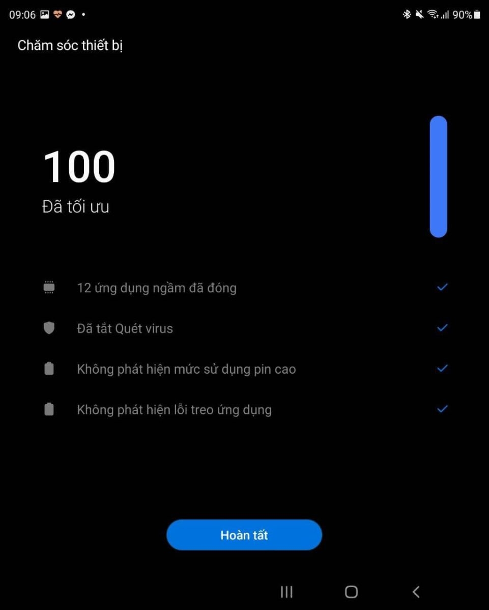 Sau khi xong, bạn bấm Hoàn tất, lúc này các chỉ số của ứng dụng sẽ tốt hơn như ảnh dưới.
