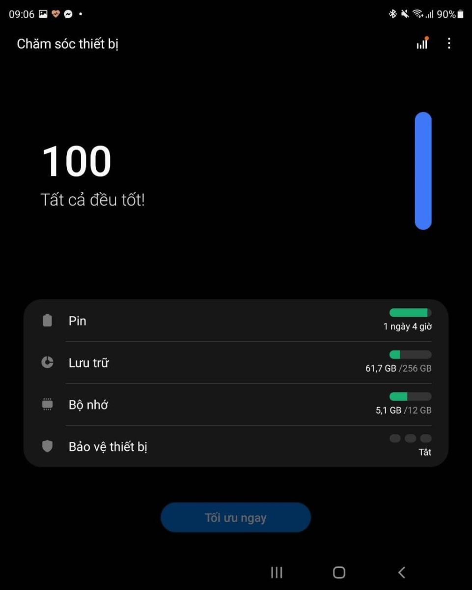 Bấm vào nút Tối ưu ngay để tiến hành "bảo dưỡng" thiết bị. Quá trình sẽ tốn ít phút tuỳ vào số lượng dữ liệu trong máy.