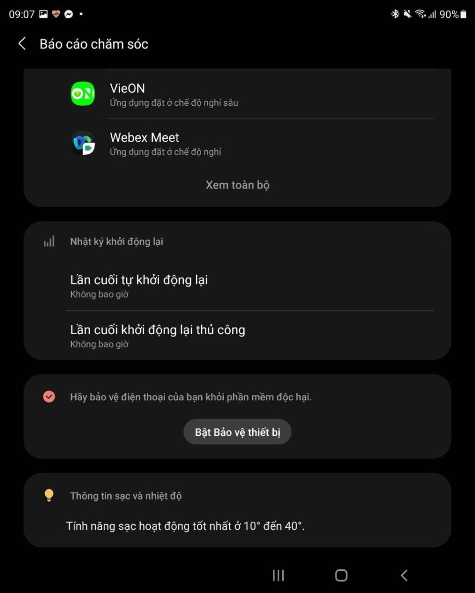 Sử dụng app Device Care để bảo dưỡng và tối ưu thiết bị