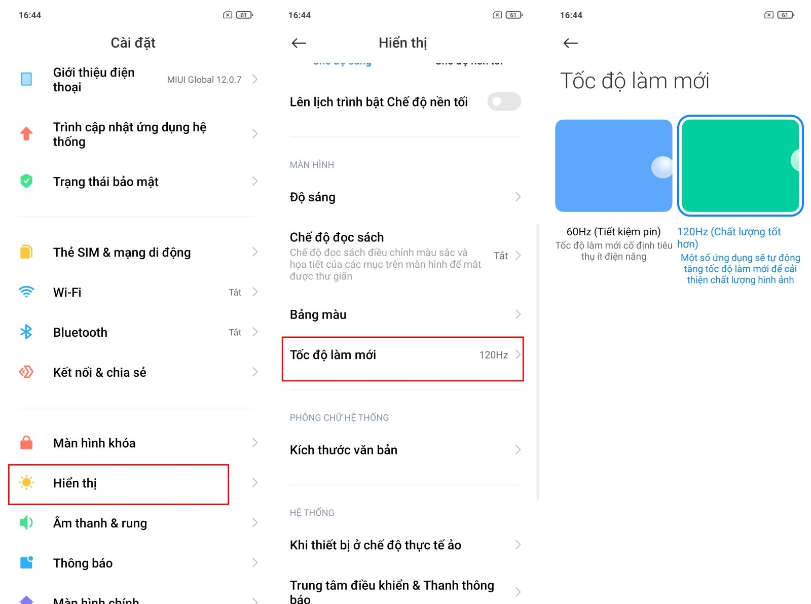 Điểm ấn tượng trên Mi 10T Lite 5G là được trang bị màn hình 120Hz, vượt trội rất nhiều so với nhiều đối thủ khác. Tần số quét lớn sẽ giúp bạn trải nghiệm mượt mà, nhanh chóng, phản hồi dường như ngay lập tức. Chính vì vậy bạn đừng bỏ lỡ tính năng này trên Mi 10T Lite 5G. Để thiết lập bạn chọn Cài đặt, chọn Hiển thị, chọn Tốc độ làm mới, chọn 120Hz. Không chỉ nâng tầm trải nghiệm mà Xiaomi còn tùy chỉnh tính năng phù hợp cho từng tác vụ để tiết kiệm pin.
