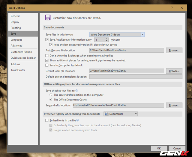 Trong các phiên bản Microsoft Office mới gần đây đều có hỗ trợ tính năng khôi phục lại nội dung tập tin Word mà bạn đã soạn thảo trước đó. Sự lựa chọn, xác định thời gian sao lưu mặc định trong phần thiết lập Save của ứng dụng Office là mấu chốt cho việc hồi phục văn bản ít hay nhiều.