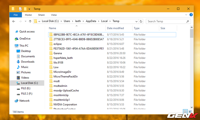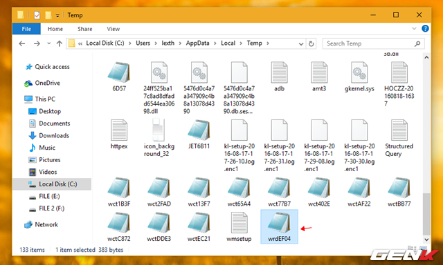 Nếu bạn không thể sử dụng các cách trên để lấy lại tập tin Word bị lỗi trong Office 2016 , bạn hãy mở File Explorer lên và truy cập vào đường dẫn như sau: "C:\Users\\AppData\Local\Temp"