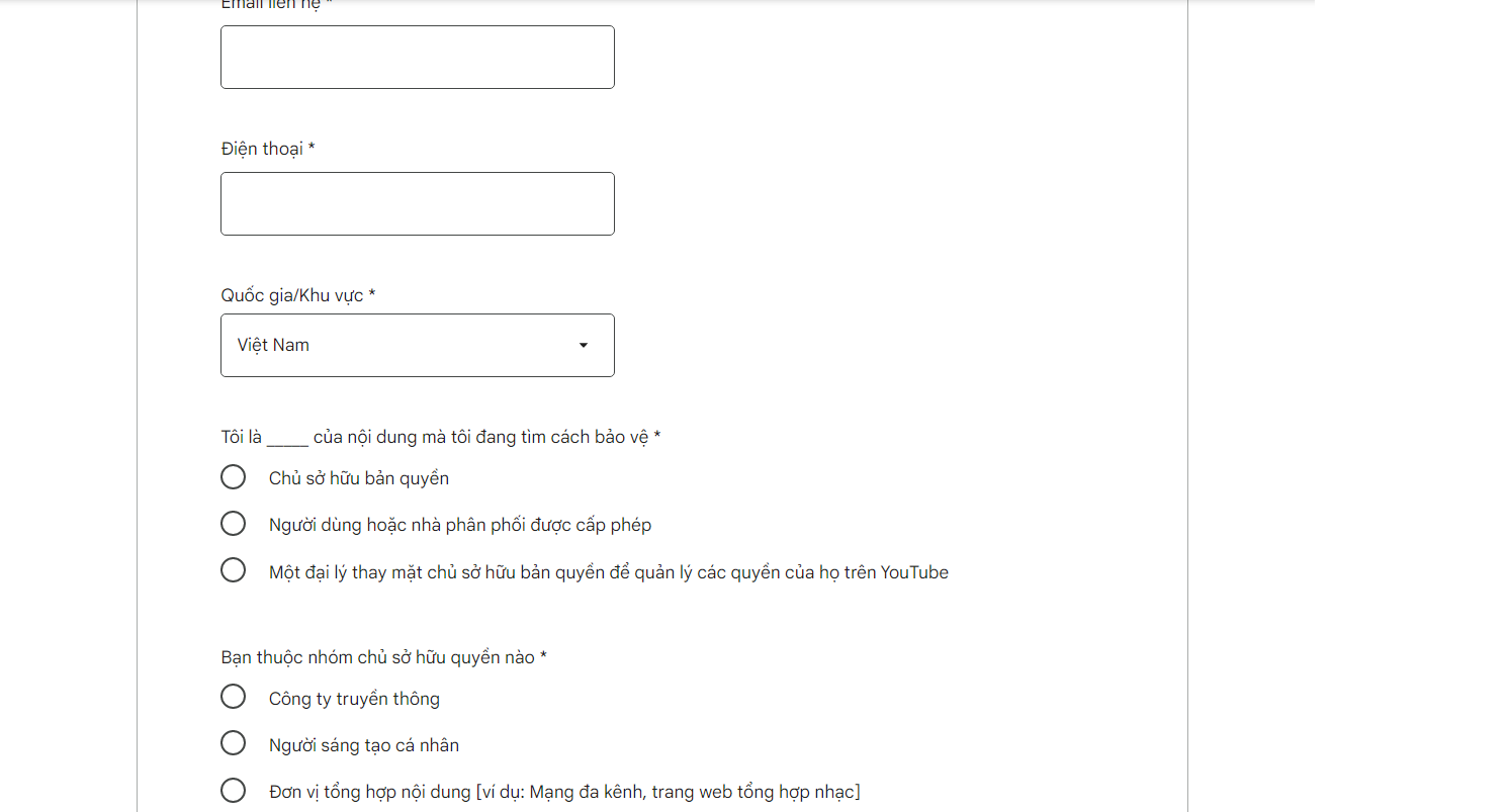 Bước 2: Điền đầy đủ các thông tin mà đơn yêu cầu như: tên, email, số điện thoại,... và tích vào các ô trống theo đúng thông tin của bạn.