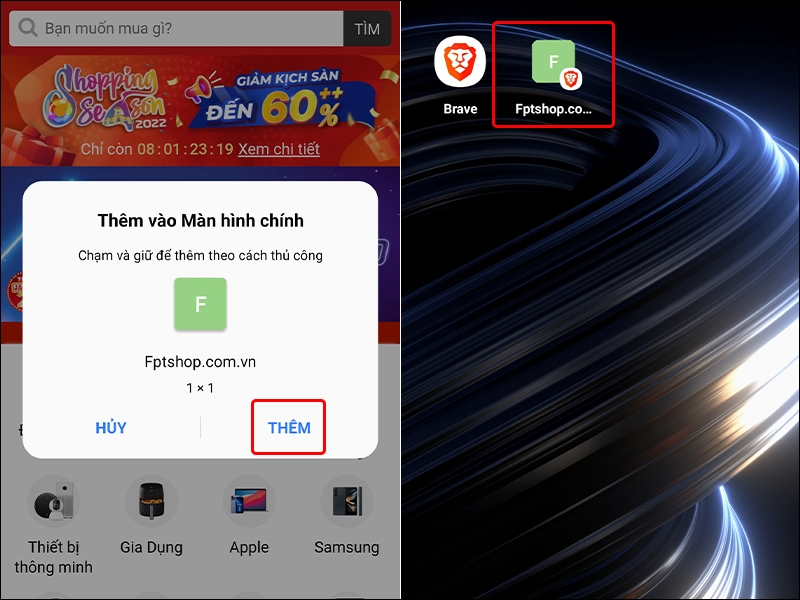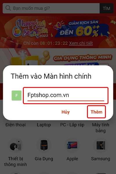 Bước 3: Nhấn vào THÊM để hoàn tất cài đặt → Vậy là bạn có thể truy cập nhanh vào trang web bằng cách chạm vào lối tắt ở trên màn hình là xong.