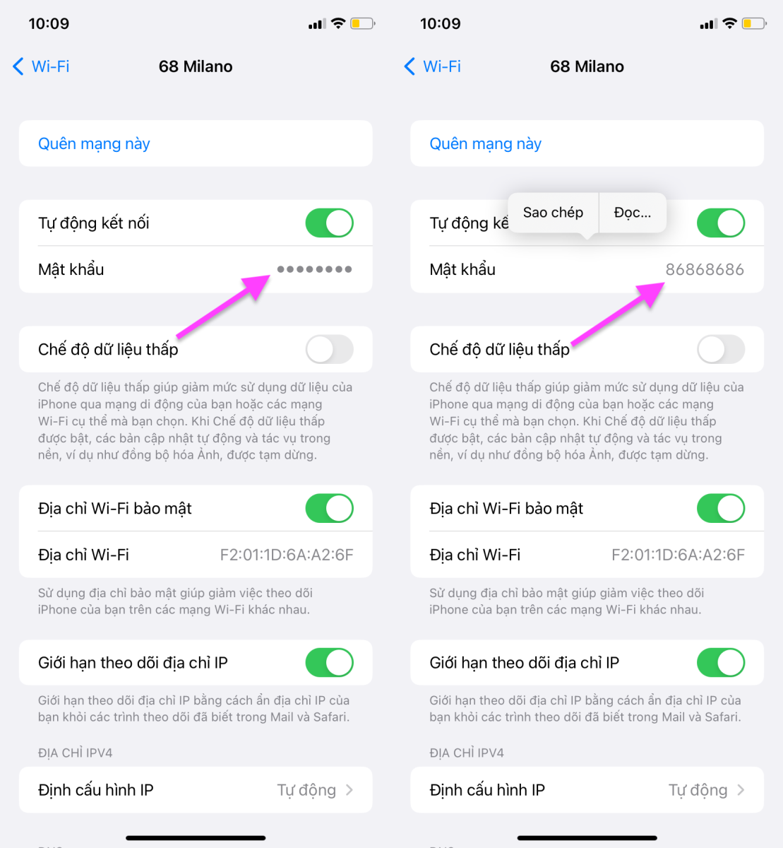 Cũng tại màn hình danh sách WiFi, bạn có thể bấm lên nút Info (Thông tin) hình chữ i nằm bên cạnh tên WiFi bất kỳ, sau đó làm theo hướng trong bài viết Chia sẻ bạn cách xem lại mật khẩu Wi-Fi trên iOS 16 của chúng tôi để xem lại mật khẩu của một mạng WiFi đó.