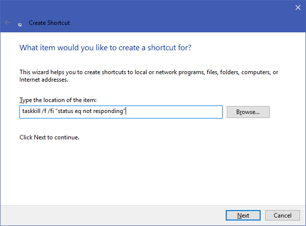 Dùng shortcut để kill một chương trình bị treo