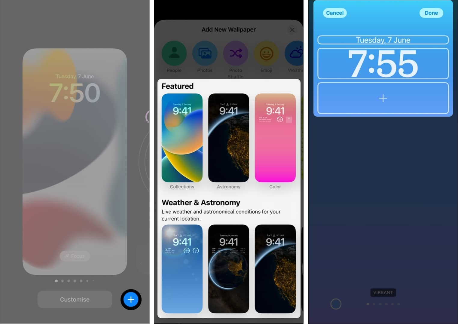 Cụ thể, bạn sẽ có thể tạo nhiều màn hình khóa, thay đổi phông chữ, màu chữ và thêm tiện ích (widget), chọn hình nền từ nhiều mục trong bộ nhớ, cá nhân hóa chúng, hoặc thêm các chế độ tập trung cho các mục đích cụ thể. Dưới đây sẽ lần lượt hướng dẫn bạn cách thực hiện từng mục.