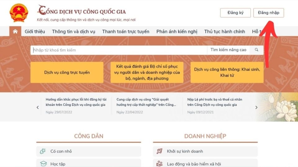 Bước 1: Truy cập vào trang website chính thống của Cổng dịch vụ công Quốc gia tại: