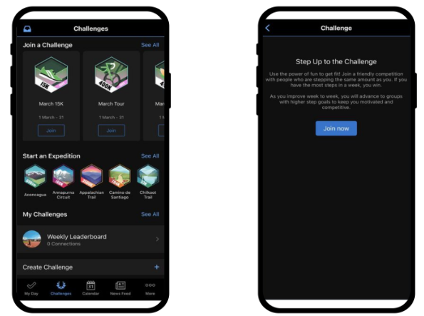 Vào ứng dụng Garmin Connect chọn Tab “Challenges” (thử thách) trên ứng dụng Garmin Connect sẽ cung cấp cho bạn các thử thách luyện tập khác nhau, và mỗi khi vượt qua thử thách, bạn sẽ có thể sưu tầm các huy hiệu hay huy chương ảo như một dạng khuyến khích cho những nỗ lực của bạn.