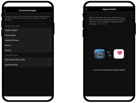 Nếu muốn đồng bộ hóa dữ liệu của smartwatch Garmin với các ứng dụng tương tứng khác, bạn có thể thiết lập ngay trên Garmin Connect. Truy cập “More” -> “Settings” -> Connected Apps”. Tại đây, bạn có thể thêm các ứng dụng khác mà bạn muốn chia sẻ dữ liệu từ Garmin Connect.