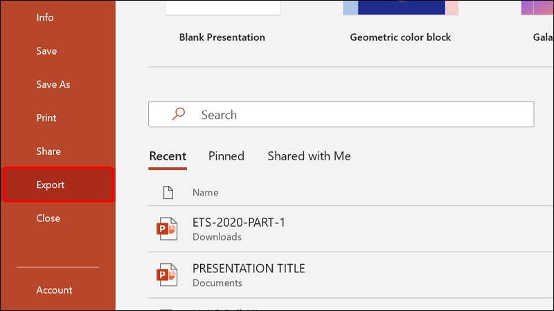 Bước 2: Chọn Export.