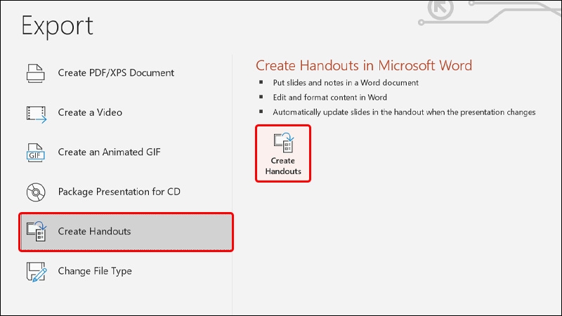 Bước 3: Nhấn vào Create Handouts → Chọn Create Handouts.